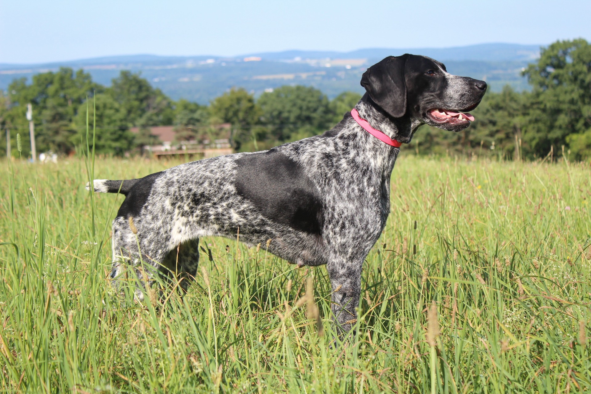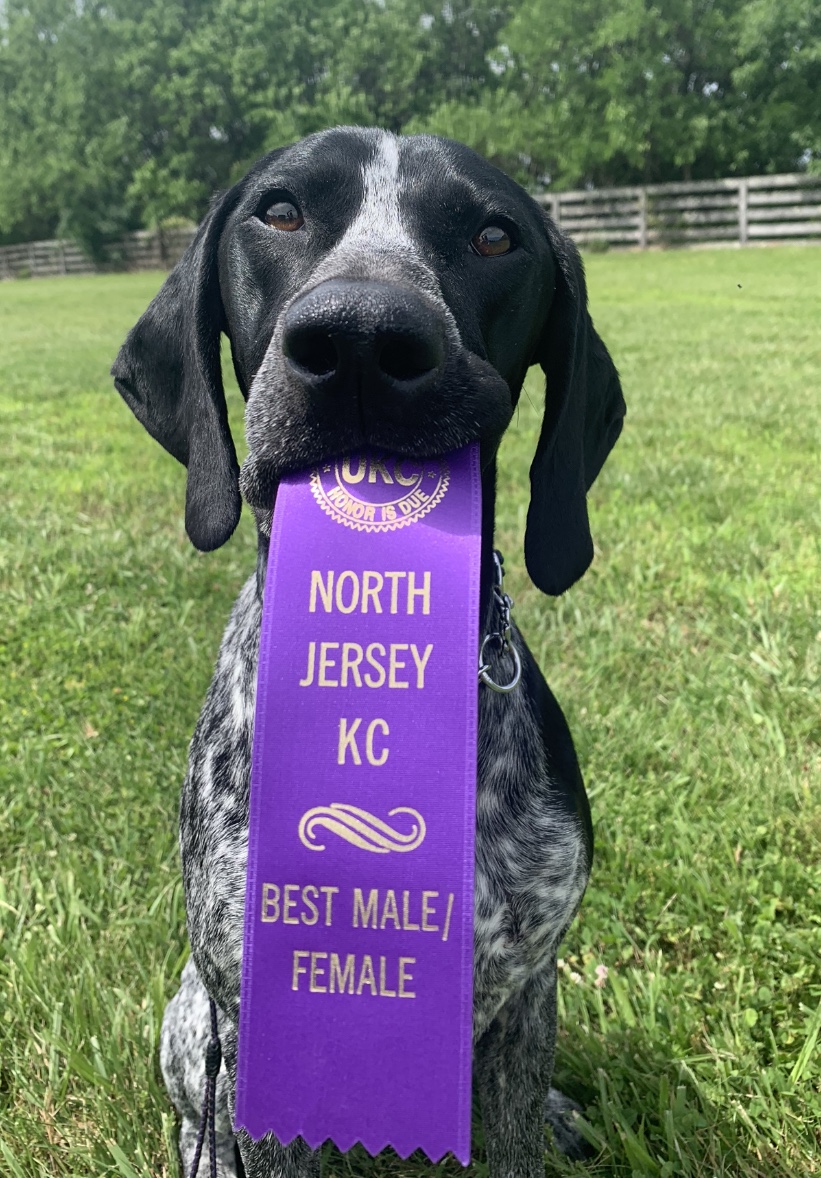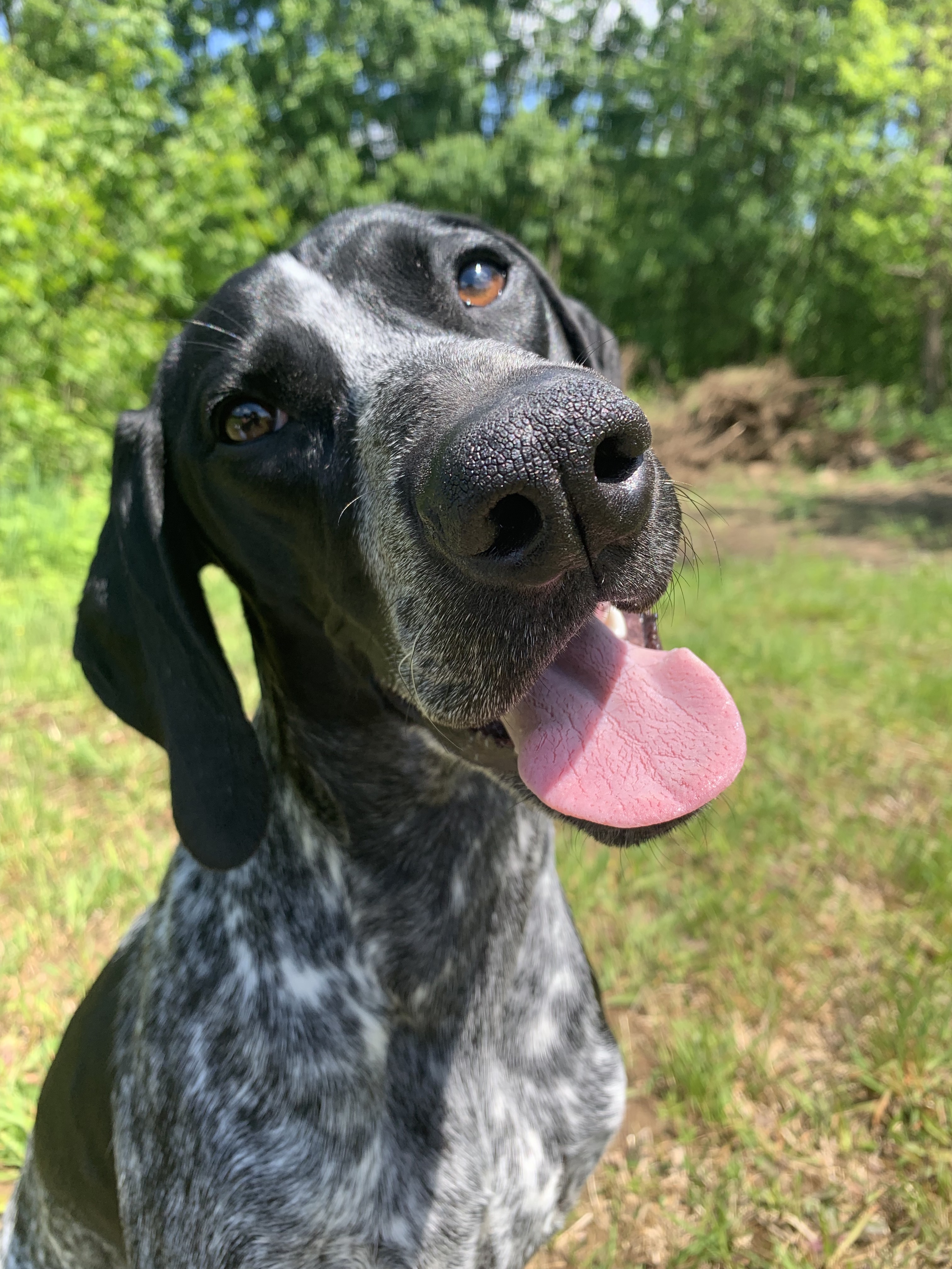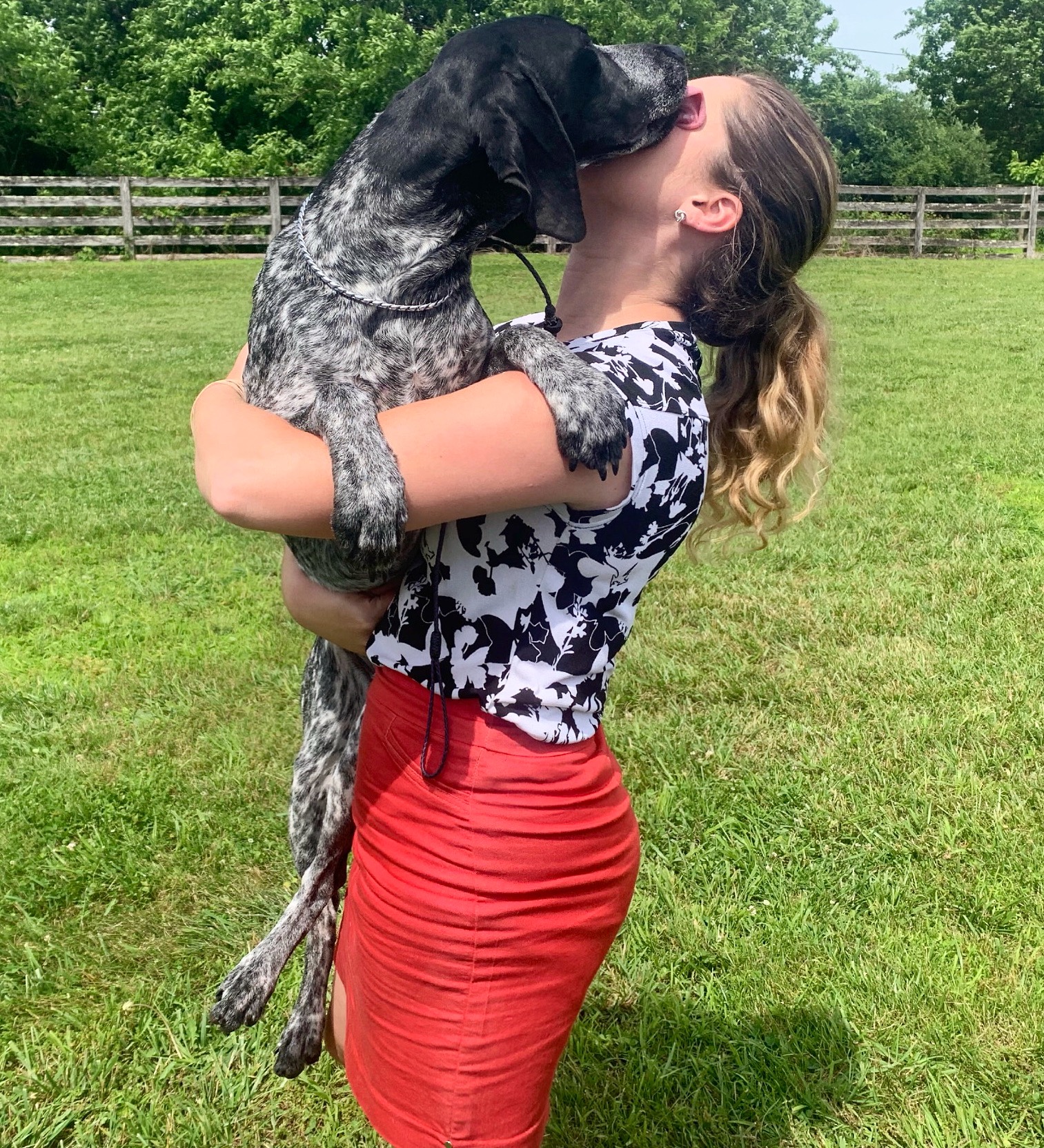 Windheim’s Wild Card aka Zenzi is a beautiful black GSP bred by Denise Avery. Zenzi is an absolute sweetheart & loves all the animals on our farm. Zenzi is very biddable; she excels at pretty much everything you point her at. We recently started running Fast Cat where Zenzi easily picked up her BCAT title and is close to obtaining her DCAT! She is also the best cuddler.
